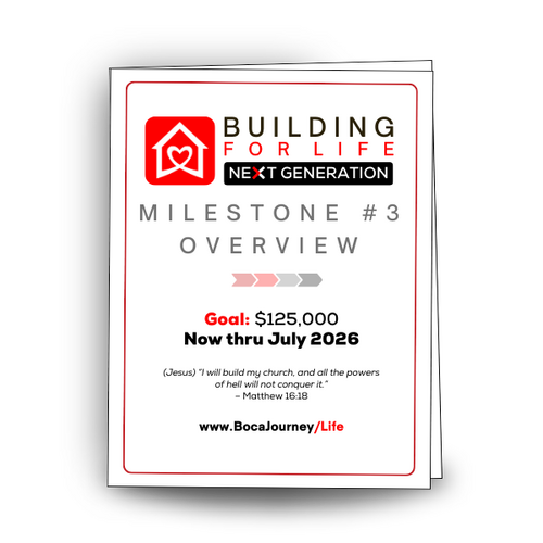 Or you can give by PayPal, Venmo or CashApp. Just designate “Building for Life: Next Generation” in the memo line. Complete details available at BocaJourney.com/Giving.